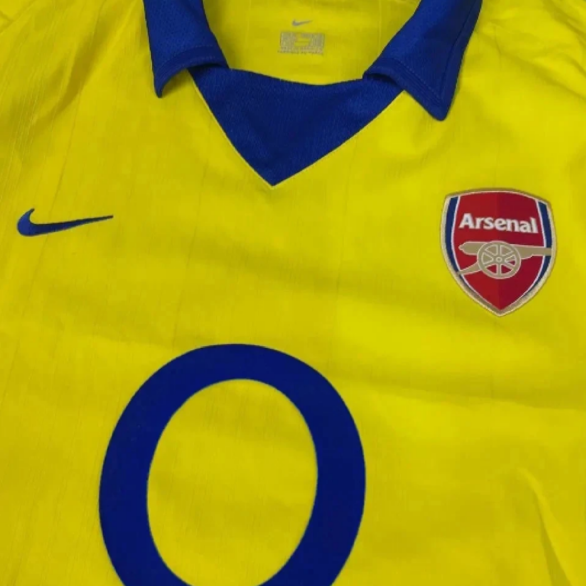 Own a piece of football history with this iconic yellow Arsenal away shirt, worn during the legendary "Invincibles" season and the campaign immediately following. This jersey symbolizes one of the greatest achievements in English football, making it a must-have for any discerning fan or serious collector. Featuring the classic canary yellow base with navy blue trim and detailing, a timeless aesthetic that harks back to Arsenal’s rich history in yellow. An original Nike design, known for quality, featuring the embroidered Nike swoosh and the iconic Arsenal crest over the heart.Worn by club legends such as Thierry Henry, Dennis Bergkamp, Patrick Vieira, and Robert Pirès during a golden age for the club.