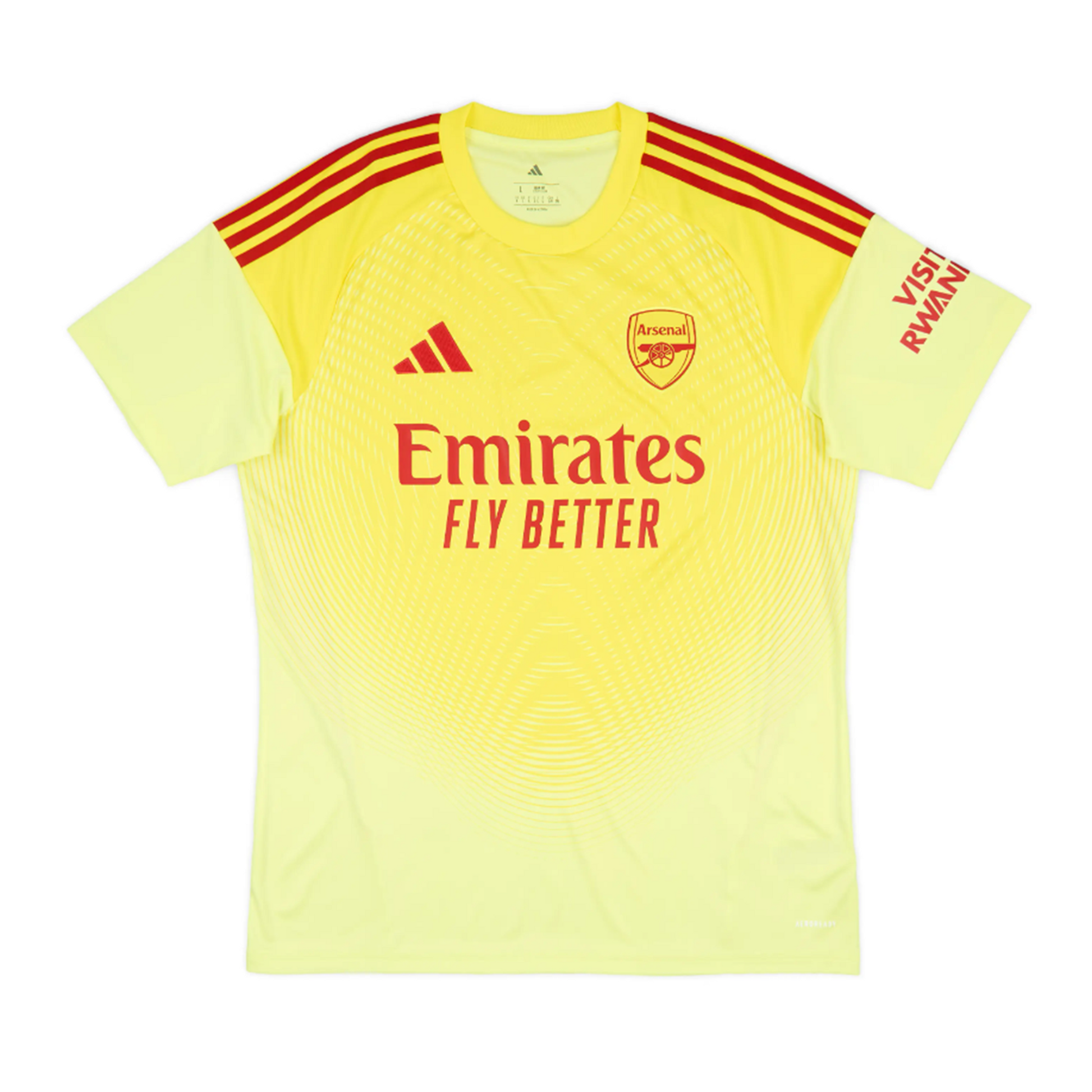 This Jersey, based on the adidas Tiro 25 teamwear, features a bright yellow base with a dynamic, darker yellow graphic on the front and bold red accents, including a monochrome red embroidered cannon badge. Crafted with moisture-absorbing AEROREADY technology and strategic stretch panels, this slim-fit jersey provides ultimate comfort and freedom of movement to help keepers stay focused on keeping clean sheets. Bright, bold, and ready for action: the Goalkeeper Jersey in vibrant yellow and red. Features AEROREADY technology, a sleek, slim fit with stretch inserts, and a proud embroidered club crest.