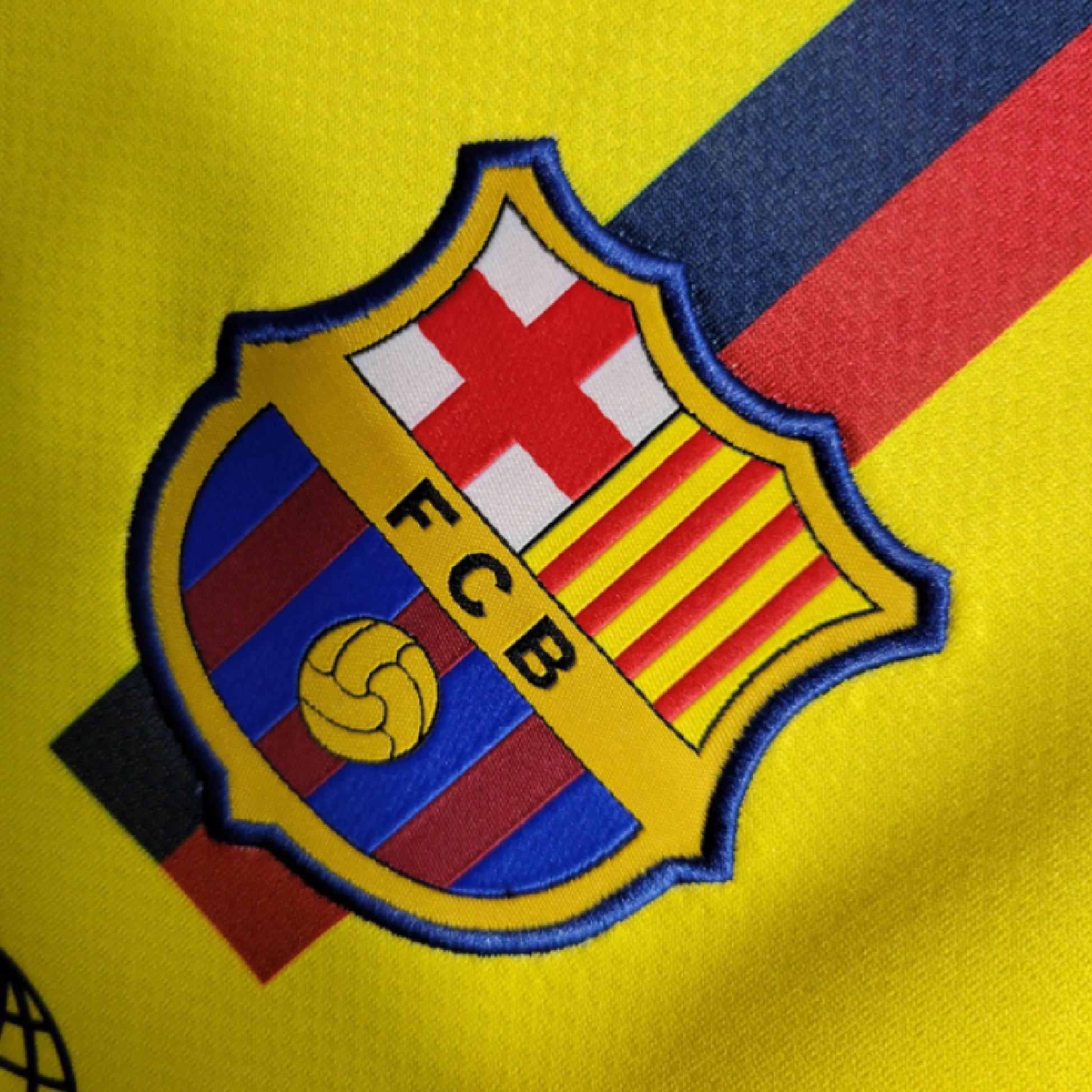 Relive the genius of the greatest player of all time with the FC Barcelona 2008-10 Away Retro Jersey, featuring Lionel Messi's name and iconic number 10. This classic shirt is synonymous with the start of the Pep Guardiola era and the historic treble-winning 2008-09 season, where the Blaugrana became the first Spanish team ever to win La Liga, the Copa del Rey, and the Champions League in a single campaign. The jersey features a distinctive vibrant yellow design with blue and red accents on the trim, a bold look that became iconic after famous victories like the stunning 6-2 triumph over Real Madrid at the Bernabéu. The official manufacturer was Nike, and the unique aspect of this era was the UNICEF logo displayed across the chest, symbolizing the club's charitable commitment rather than a commercial sponsor. Both authentic originals and quality modern replicas often utilized Nike's 'Dri-FIT' technology for comfort and breathability. Lionel Messi wore the number 10 shirt and was the undisputed star and focal point of the team, scoring crucial goals including one in the 2009 Champions League final. He was a pivotal figure in a squad of superstars and club legends, including Xavi, Andrés Iniesta, Carles Puyol, Thierry Henry, and Samuel Eto'o. This jersey is a tribute to the beginning of a golden age for the club and a truly special piece of football history.