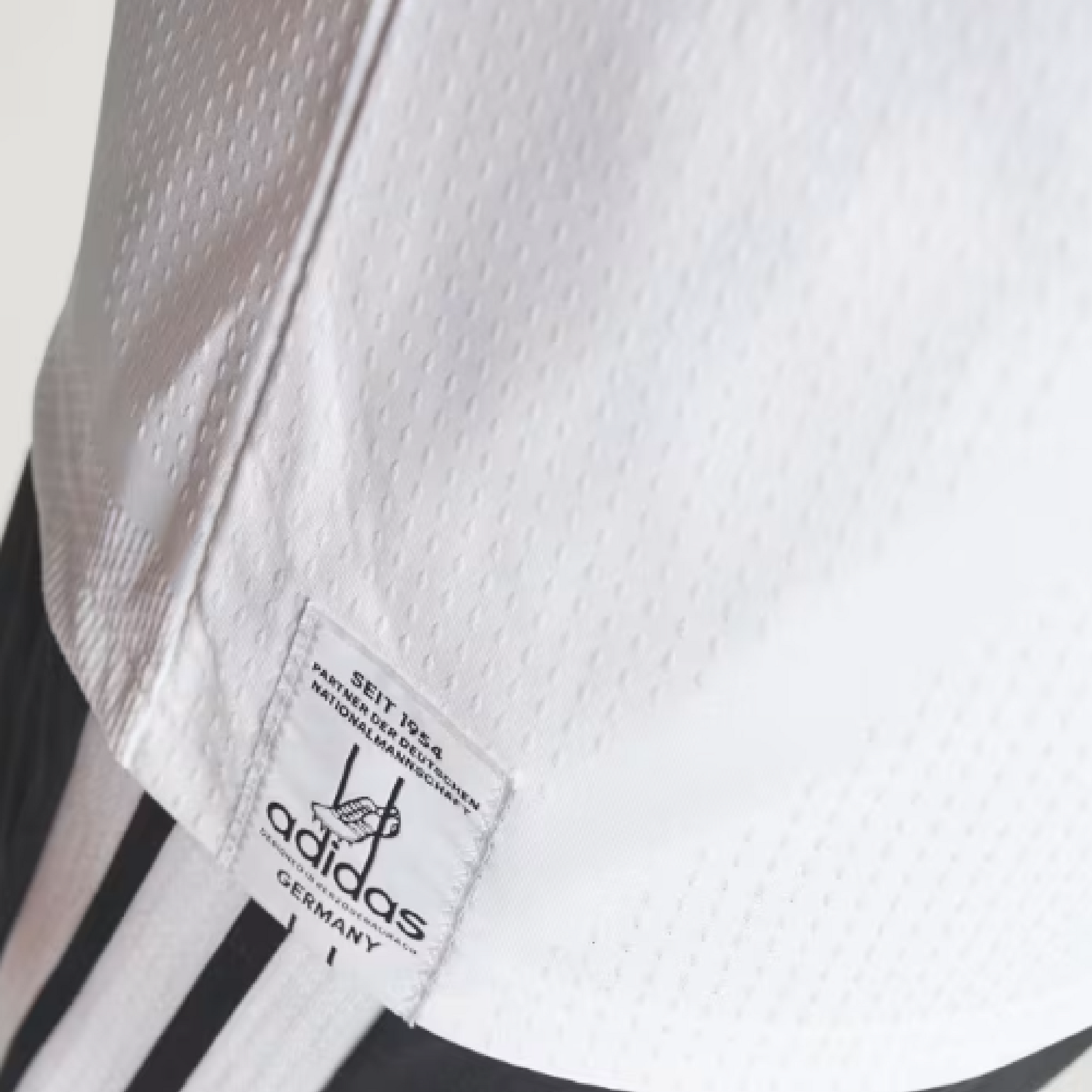 When it comes to football, the Germany 26 Adidas Home Authentic Jersey is a symbol of heritage and innovation. Drawing inspiration from iconic moments, this jersey is designed to be the icon of tomorrow. This jersey is crafted with Climacool+ technology. Advanced cooling. With Climacool+ technology, superior engineering and advanced materials unite for a cool, dry, and distraction-free performance. Crafted with precision, the jersey features a contrast colour collar and EQT collar with tape, adding a touch of style to your game. The sweat-wicking materials are strategically placed in high sweat zones, helping you feel comfortable throughout the match. adidas branding is subtly integrated with lenticular heat transfer logos and perforated 3-Stripes tape, showcasing the brand's commitment to quality and design. Get ready to make a statement with this cool piece.