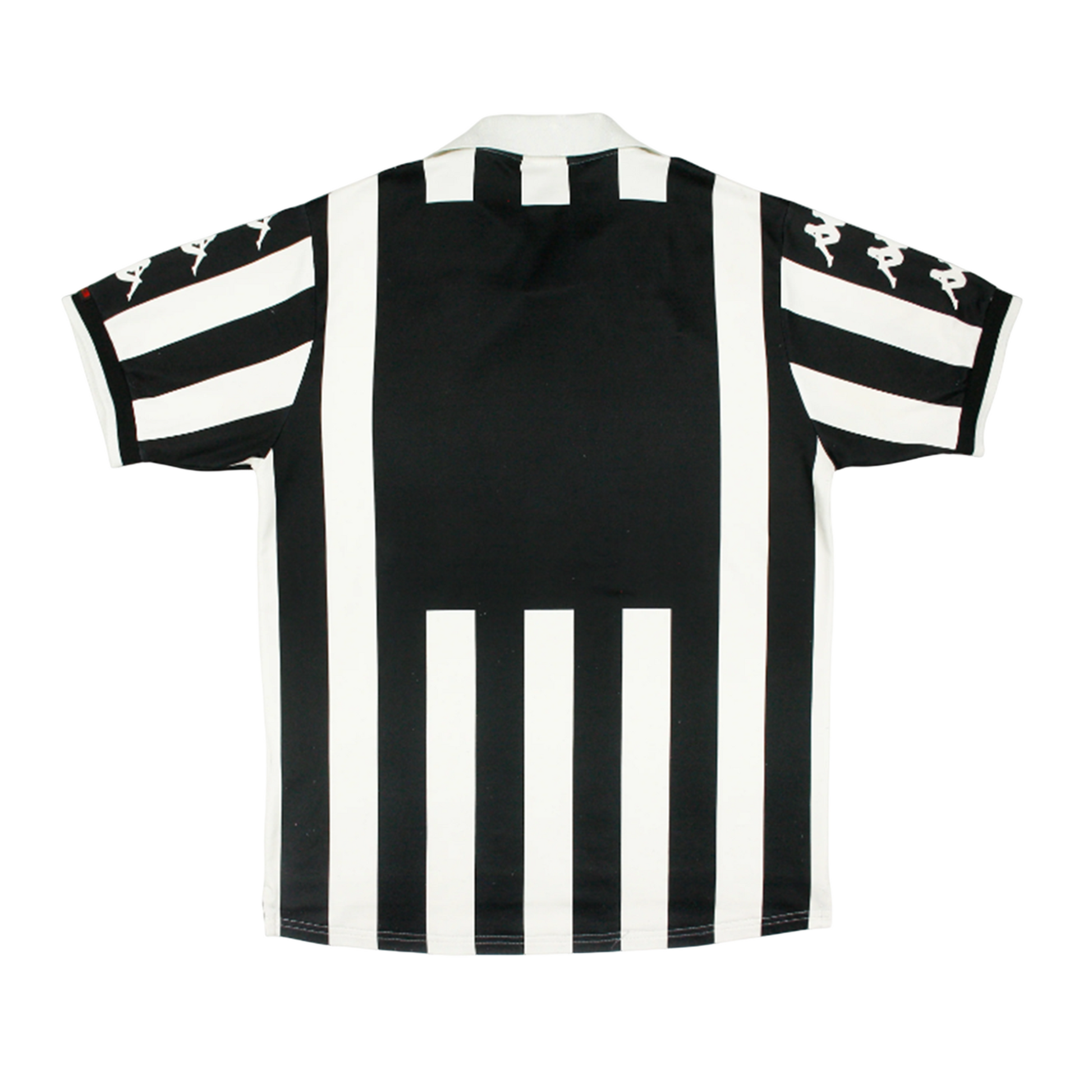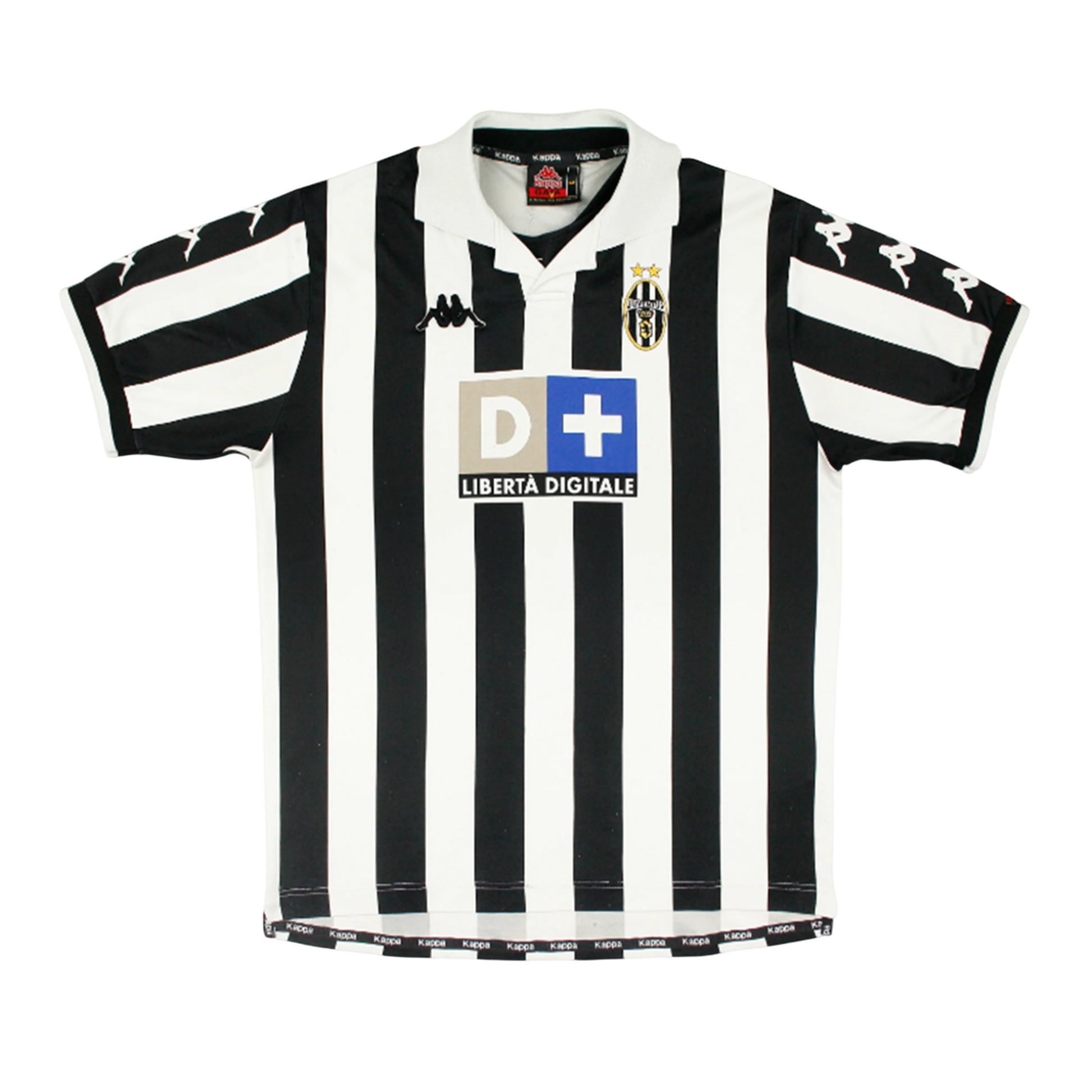 Step back in time to the turn of the millennium with the Juventus 1999-2000 Home Retro Jersey, a classic symbol of one of Italy's most storied clubs. This iconic black and white striped shirt represents a season of fierce competition where a star-studded Bianconeri squad battled intensely for the Serie A title. The jersey features the prestigious Juventus crest and the era's prominent sponsor, "Kappa", displayed across the chest, capturing the authentic look and feel of 90s Italian football. This classic kit was worn by a generation of global superstars who defined the era of Calcio. Managed by Carlo Ancelotti, the team boasted legends such as the elegant French midfield maestro Zinedine Zidane, dynamic Dutchman Edgar Davids, clinical striker Filippo Inzaghi, and the iconic captain and creative genius, Alessandro Del Piero. Owning this retro jersey allows you to relive the drama of that memorable campaign and pay homage to some of the greatest players to ever grace the Delle Alpi pitch. It's an essential piece for any serious football collector or Juventus supporter.