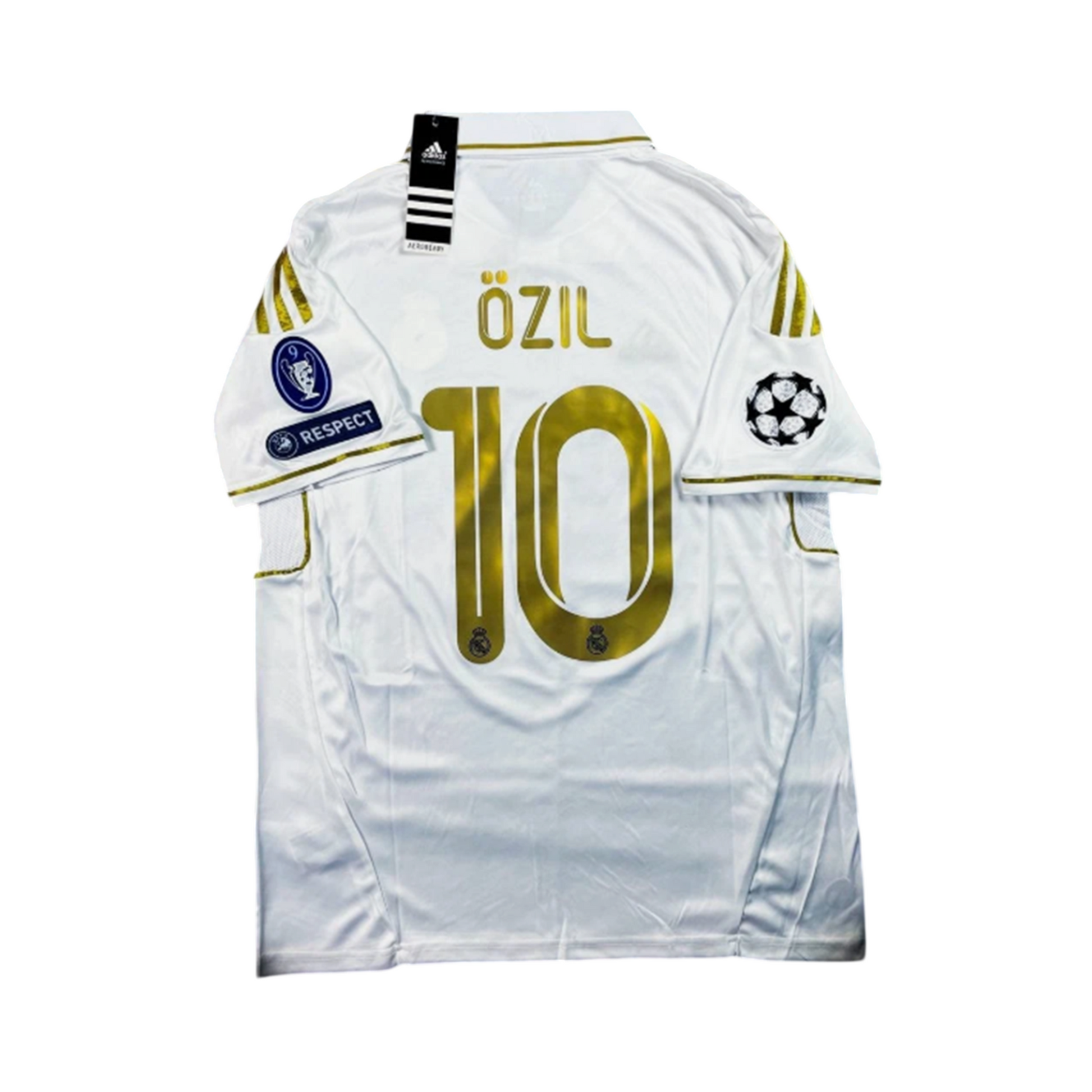 Own a piece of the "Mourinho era" with this iconic Real Madrid 2011-12 Home Retro Jersey, featuring creative playmaker Mesut Özil and his famous #10. This shirt commemorates the season where Real Madrid finally broke Barcelona's dominance and reclaimed the La Liga title with a record 100 points. Manufactured by Adidas, this jersey is a sleek, modern classic. The traditional white base is accented with striking gold trim around the collar and sleeves, giving it a premium, celebratory look. This design was worn during a spectacular campaign under José Mourinho, where Los Blancos scored a record-breaking 121 goals on their way to the league title. Mesut Özil was the "Assist King" and the creative engine of this formidable Real Madrid side, providing the ammunition for Cristiano Ronaldo and Karim Benzema. Known for his elegant style, brilliant vision, and perfect final pass, the German international was a fan favorite at the Bernabéu. His #10 jersey is synonymous with that record-breaking season where his playmaking genius was central to Real Madrid's domestic success.