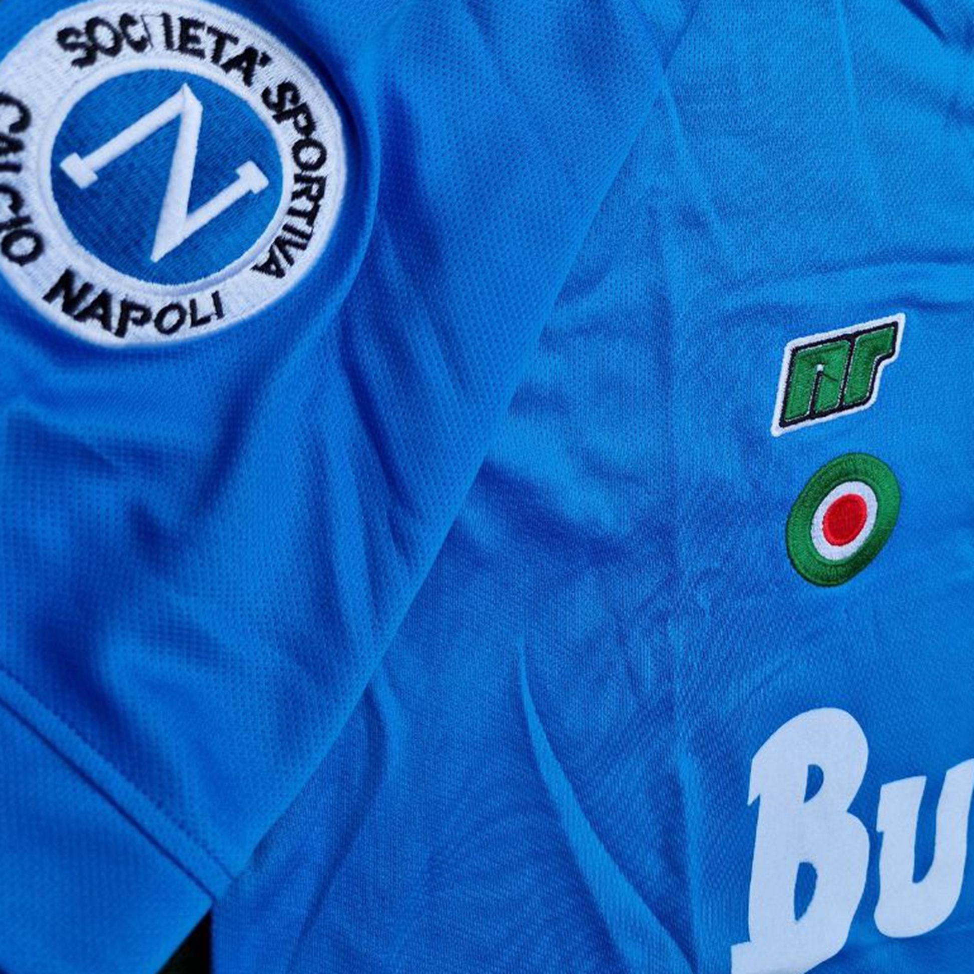 Manufactured by Ennerre (NR) and featuring the classic Buitoni sponsor, this timeless Azzurri blue jersey was worn immediately after Napoli's historic first-ever Serie A title win in the 1986-87 season. As the reigning Italian champions, the 1987-88 season saw the team proudly wear commemorative cockades on the chest, a symbol of their domestic dominance. While they ultimately finished second in the league that year after a tight title race, the season was famous for Maradona's individual brilliance. The jersey bears the number 10, which has since been retired by the club in Maradona's honor. In the 1987-88 season, Maradona delivered his most prolific goalscoring campaign for Napoli, scoring an astonishing 21 goals in the league from midfield. His performances were a mesmerising blend of genius, vision, and untouchable skill, confirming his status as the undisputed best player in the world. This shirt captures the Argentine superstar at the absolute height of his Italian legacy.