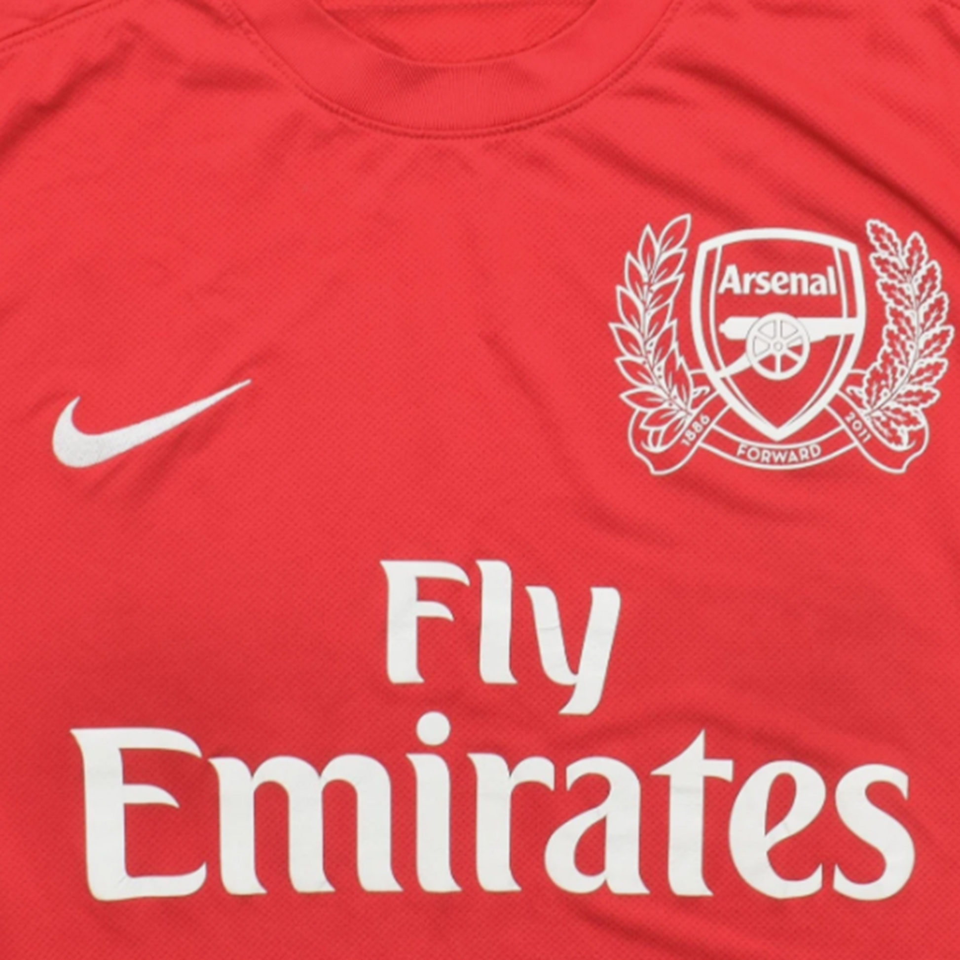 Relive the arrival of a true midfield general at the Emirates with the Arsenal 2011-12 Home Retro Jersey, featuring Mikel Arteta's name and iconic number 8. This classic Gunners shirt captures the transition period as the team solidified its future while honoring its deep roots during the club's 125th anniversary season. The jersey features the traditional vibrant red design with white sleeves and a simple white crew neck, a classic and clean aesthetic. A special edition, unique 125th anniversary crest was proudly embroidered on the chest for this campaign. The official manufacturer was Nike, and the primary sponsor displayed across the chest was Fly Emirates. Both authentic originals and quality modern replicas utilized Nike's 'Dri-FIT' technology for lightweight comfort and breathability. Mikel Arteta wore the number 8 shirt after joining on deadline day, quickly establishing himself as a reliable and experienced presence in the engine room. He was a pivotal figure in a squad that featured legends such as Robin van Persie (who had a phenomenal goalscoring season), Thierry Henry (during his brief loan return), and Thomas Vermaelen. This jersey is a tribute to the man who would eventually return to manage the club to great success, making this shirt a significant piece of modern Arsenal history.