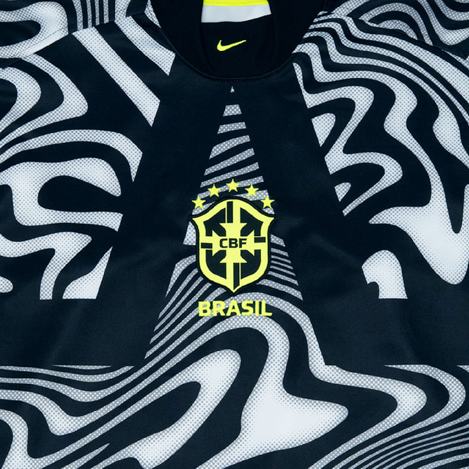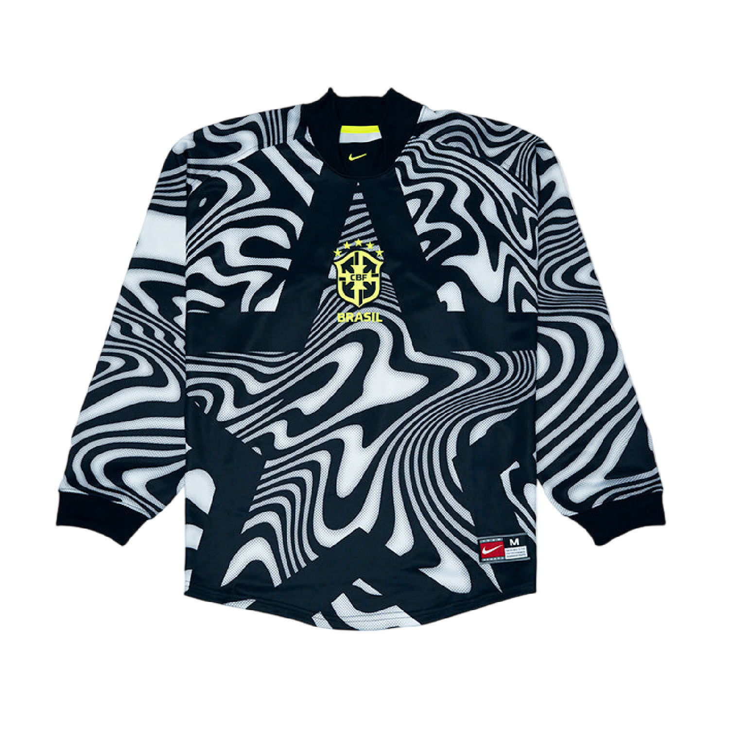 Keepers deserve their time in the spotlight. So consider this their Walk of Fame, a collection that hands out stars to every shot-blocker with the guts to get between the posts. The Jersey is a bold, black, and "Volt" shirt with a wavy graphic print, inspired by 90s goalkeeper style. Honour these one-of-a-kind athletes with this loose-fit Brazil top.