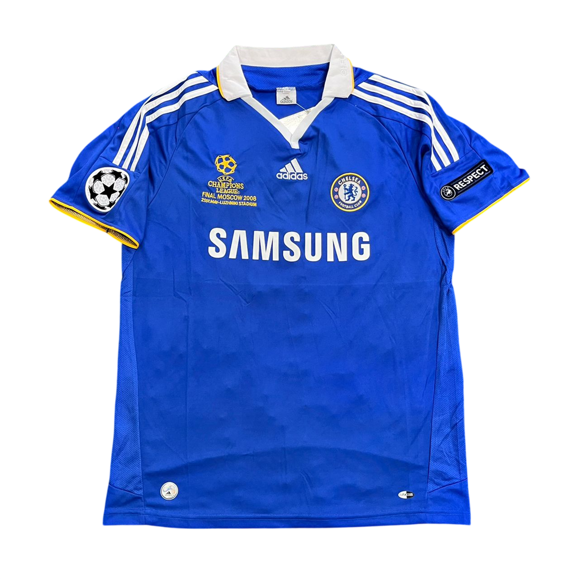 Own a piece of Chelsea's transitional history with this iconic Chelsea 2008-09 Home Retro Jersey, featuring German midfield powerhouse Michael Ballack and his famous #13. This shirt symbolises a season of resilience for the Blues under different managers, culminating in an FA Cup victory. Manufactured by Adidas, this jersey is a modern classic representing the traditional royal blue of Chelsea. The design features subtle yellow trim and detailing, a nod to earlier successful kits. Worn across a season that saw Guus Hiddink take over as interim manager, this kit captures the look of a team that reached the Champions League semi-finals and secured the FA Cup trophy. Michael Ballack was a world-class midfielder known for his all-action style, leadership qualities, incredible aerial ability, and powerful shot from distance. A dominant presence in the engine room, the German international was a key figure in Chelsea's relentless pursuit of trophies during this era. His #13 jersey is synonymous with class, experience, and the winning mentality that defined his successful time at Stamford Bridge.