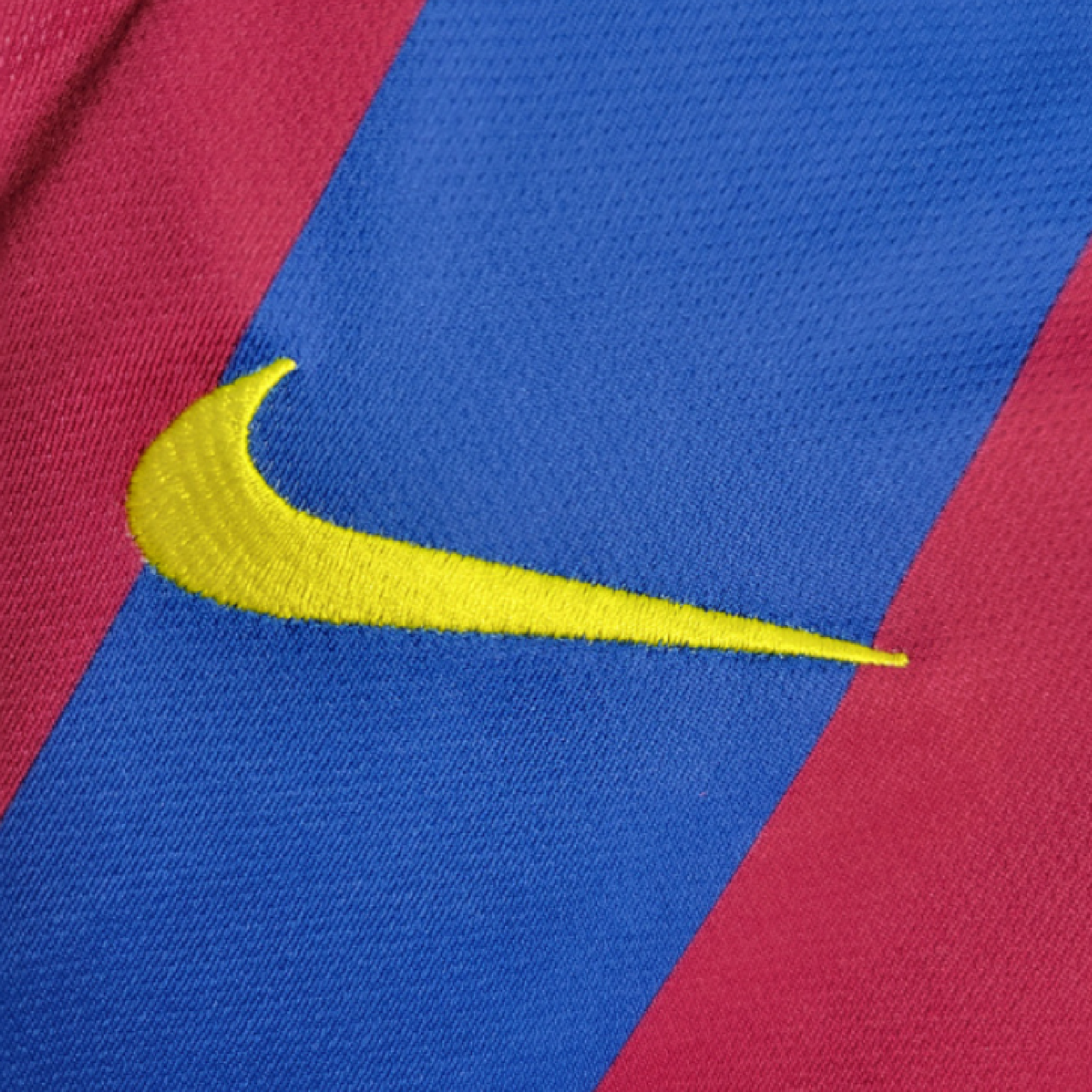 This classic Blaugrana jersey, manufactured by Nike with the distinctive yellow side inserts, represents a season of immense success. Wearing this kit, Frank Rijkaard's side dominated European and domestic football. They secured a famous La Liga title and, more significantly, won the UEFA Champions League for the first time in 14 years, defeating Arsenal in the Paris final. The team played with a flair and joy that captivated the world. The shirt features the number of Ronaldinho, who was, at this time, the undisputed best player on the planet. Fresh off winning the 2005 Ballon d'Or, he delivered another stellar season, scoring 26 goals in all competitions. He was known for his spectacular dribbling, no-look passes, and incredible free-kicks, bringing a smile to the face of every football fan. This jersey captures the essence of his magic as he orchestrated the team's historic double.