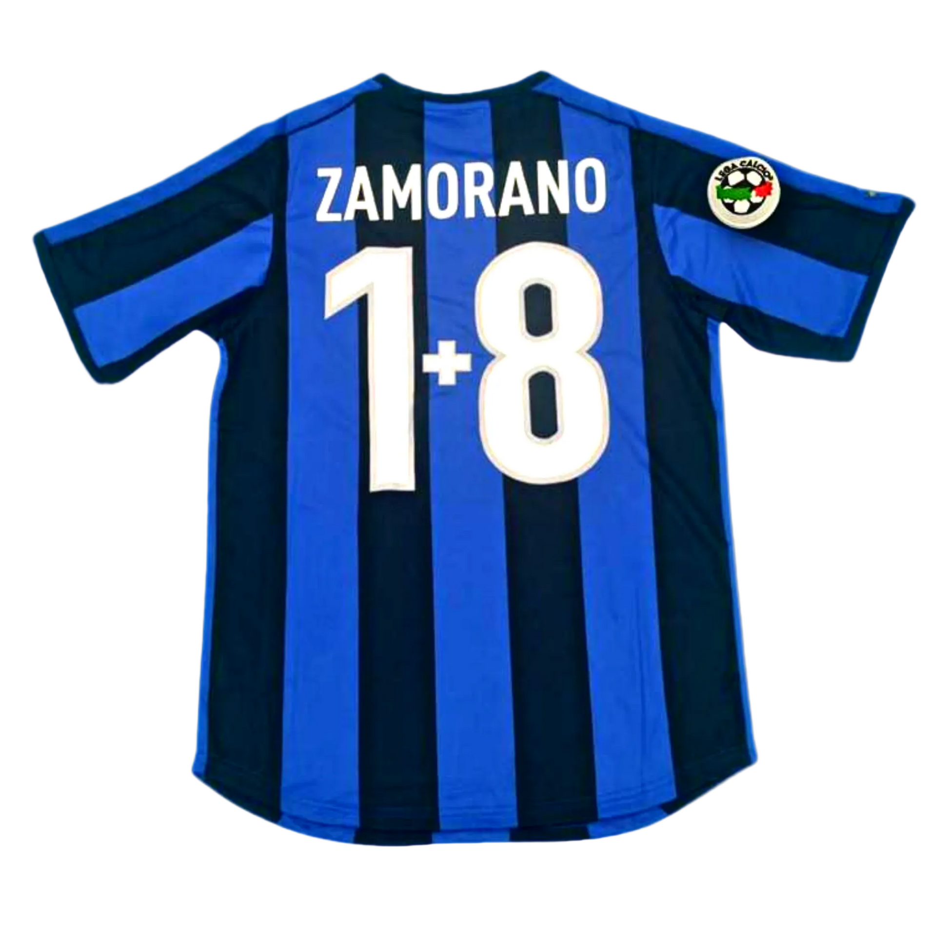 Manufactured by Nike and featuring the long-standing Pirelli sponsor, this classic Nerazzurri jersey was worn during a season of star-studded lineups, featuring players like Ronaldo, Christian Vieri, and Roberto Baggio. Due to the high number of attacking stars and a dispute over who would wear the coveted #9 shirt, the ingenious Iván Zamorano found a unique solution: he wore the number 18 with a small plus sign (+) between the digits (1+8) to signify his status as the true #9. This became an iconic piece of football memorabilia and a symbol of his character. The shirt features the number of Iván "Bam Bam" Zamorano, the powerful Chilean striker. Known for his incredible heading ability, strength, and tireless work rate, Zamorano was a crucial part of the Inter squad during the late 90s and early 2000s. This jersey captures his memorable time at the club and his unique place in Inter folklore.