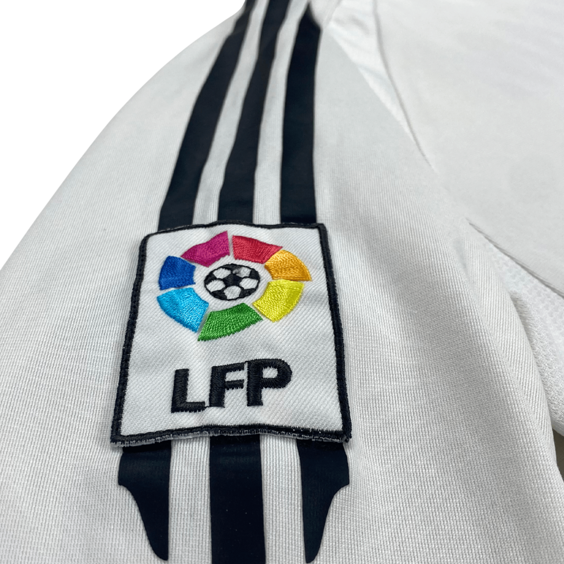 Relive the era of the Galácticos with the Real Madrid 2005-06 Home Retro Jersey, featuring David Beckham's name and iconic number 23. This classic white shirt captures the global superstar's style, set-piece mastery, and unwavering professionalism during a challenging, trophyless season that marked the end of the first Galáctico era. The jersey features the classic all-white design synonymous with the club's history, accented with a subtle diagonal gradient stripe pattern and black trim on the collar and sleeves. The official manufacturer was Adidas, and the prominent sponsor displayed across the chest was Siemens Mobile. Both authentic originals and quality modern replicas utilized Adidas' 'ClimaCool' technology for comfort and breathability. David Beckham wore the number 23 shirt, chosen as a tribute to basketball legend Michael Jordan. Despite the lack of team trophies this season, Beckham remained a central figure, playing alongside other legends such as Ronaldo, Zinédine Zidane (#5), Raúl, and Roberto Carlos. This jersey is a tribute to one of football's most iconic figures and a special piece of Real Madrid history.