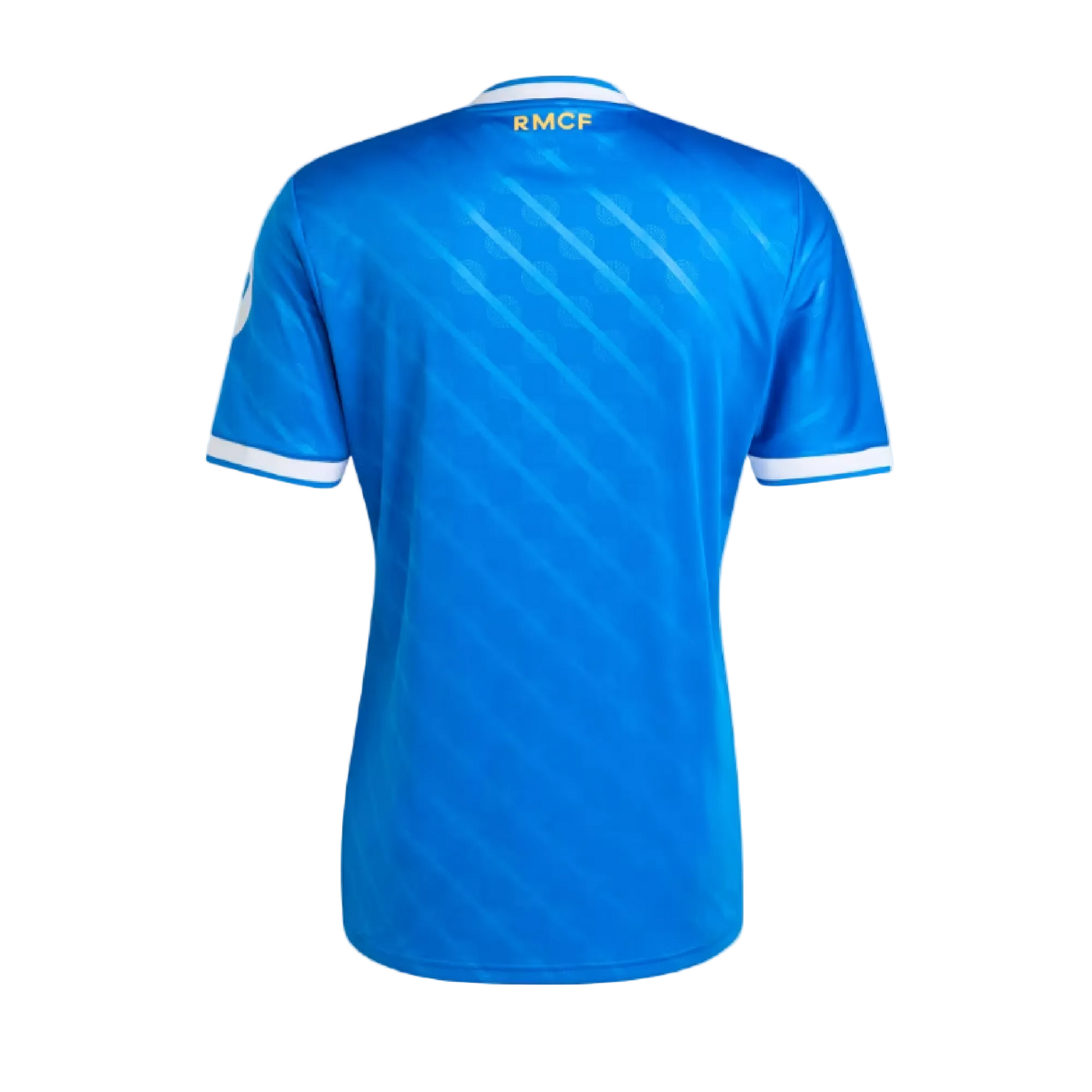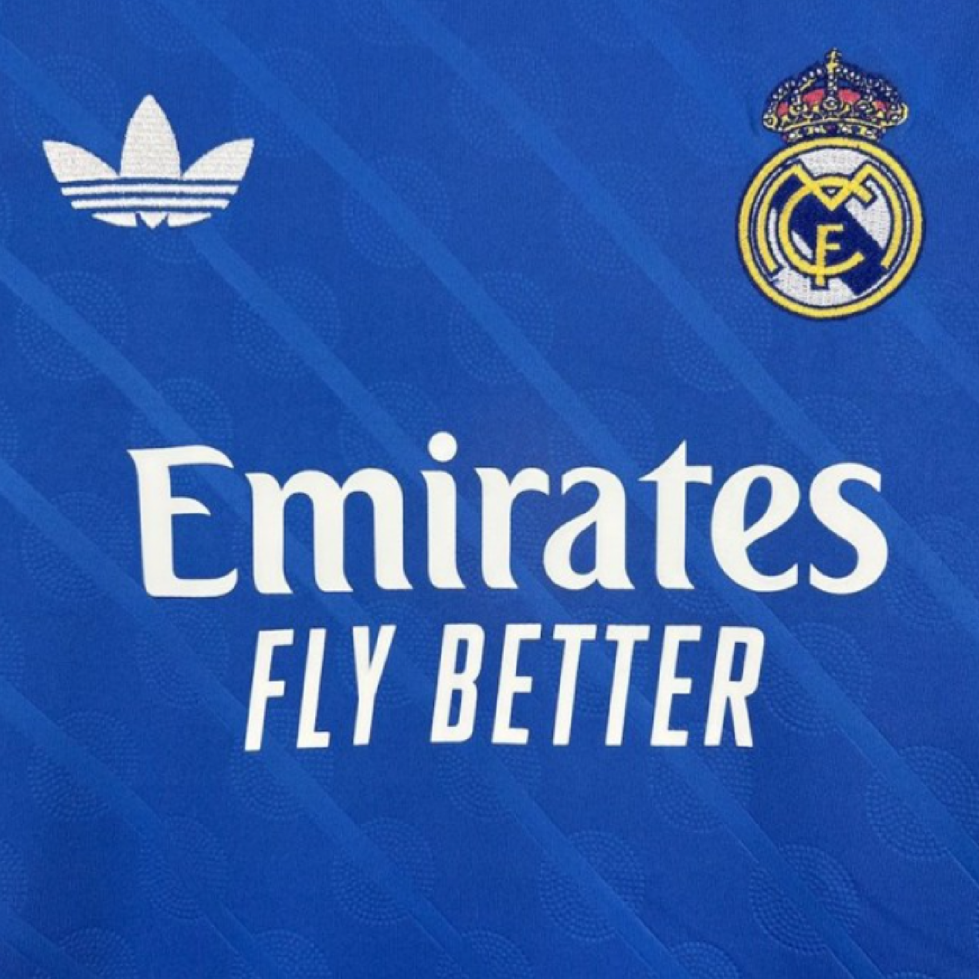 At home in blue. This Real Madrid third jersey comes in a hue that's close to the hearts of Madridistas and 3-Stripes fans. A classic adidas Originals colourway and a subtle nod to the Bernabéu's identity, it's the perfect shade to celebrate the ultimate football partnership. Serrated 3-Stripes and a Trefoil add extra adidas heritage. Moisture-managing AEROREADY keeps fans focused.